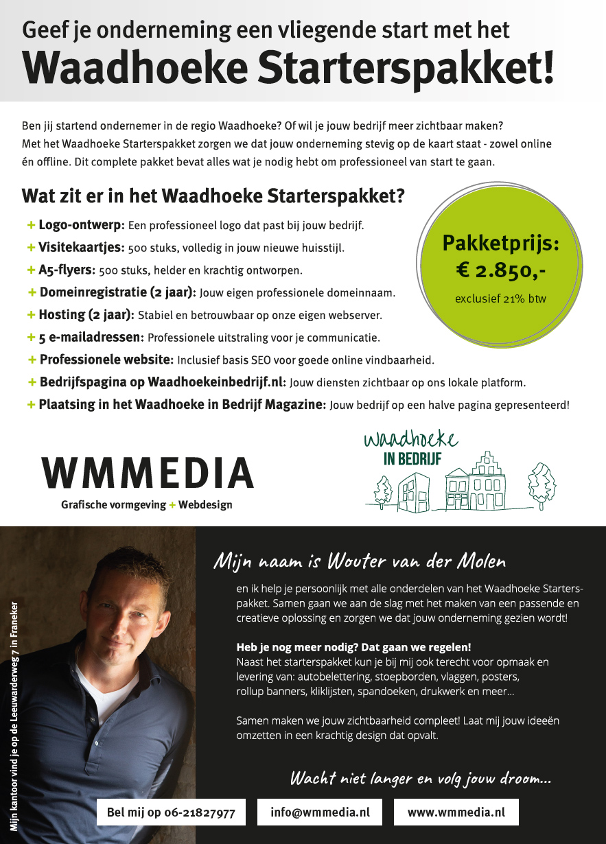 + Plaatsing in het Waadhoeke in Bedrijf Magazine: Jouw bedrijf op een halve pagina gepresenteerd!